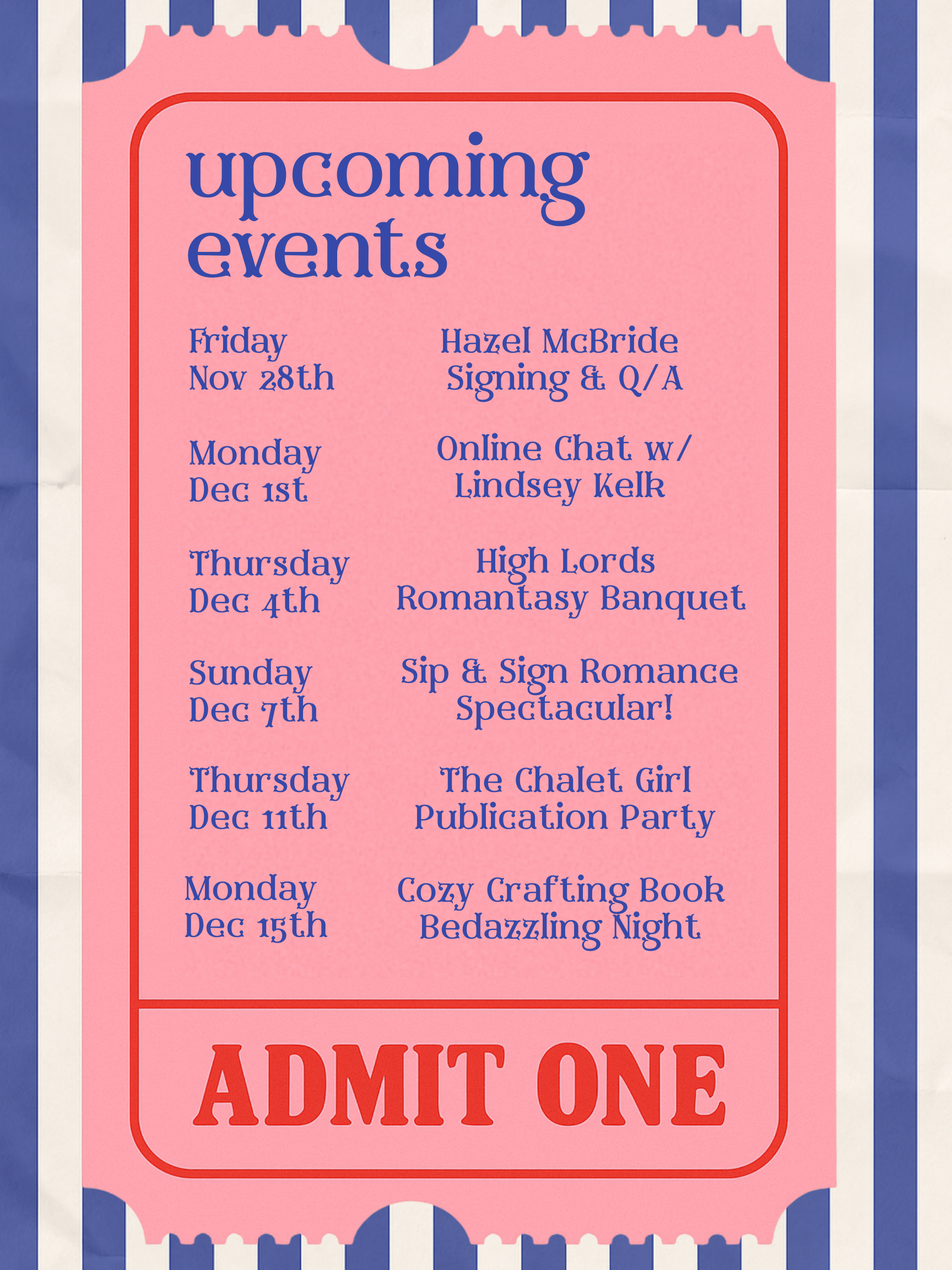Meet your favorite authors, discover new obsessions, and join fellow readers for unforgettable moments — both in-store and online.